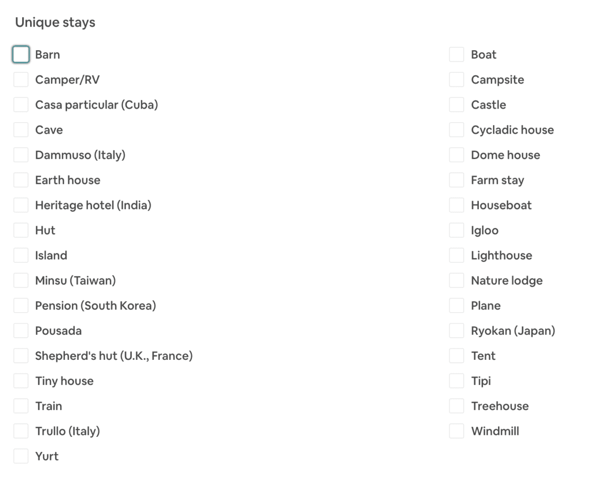 Unique Stays: Airbnb.
