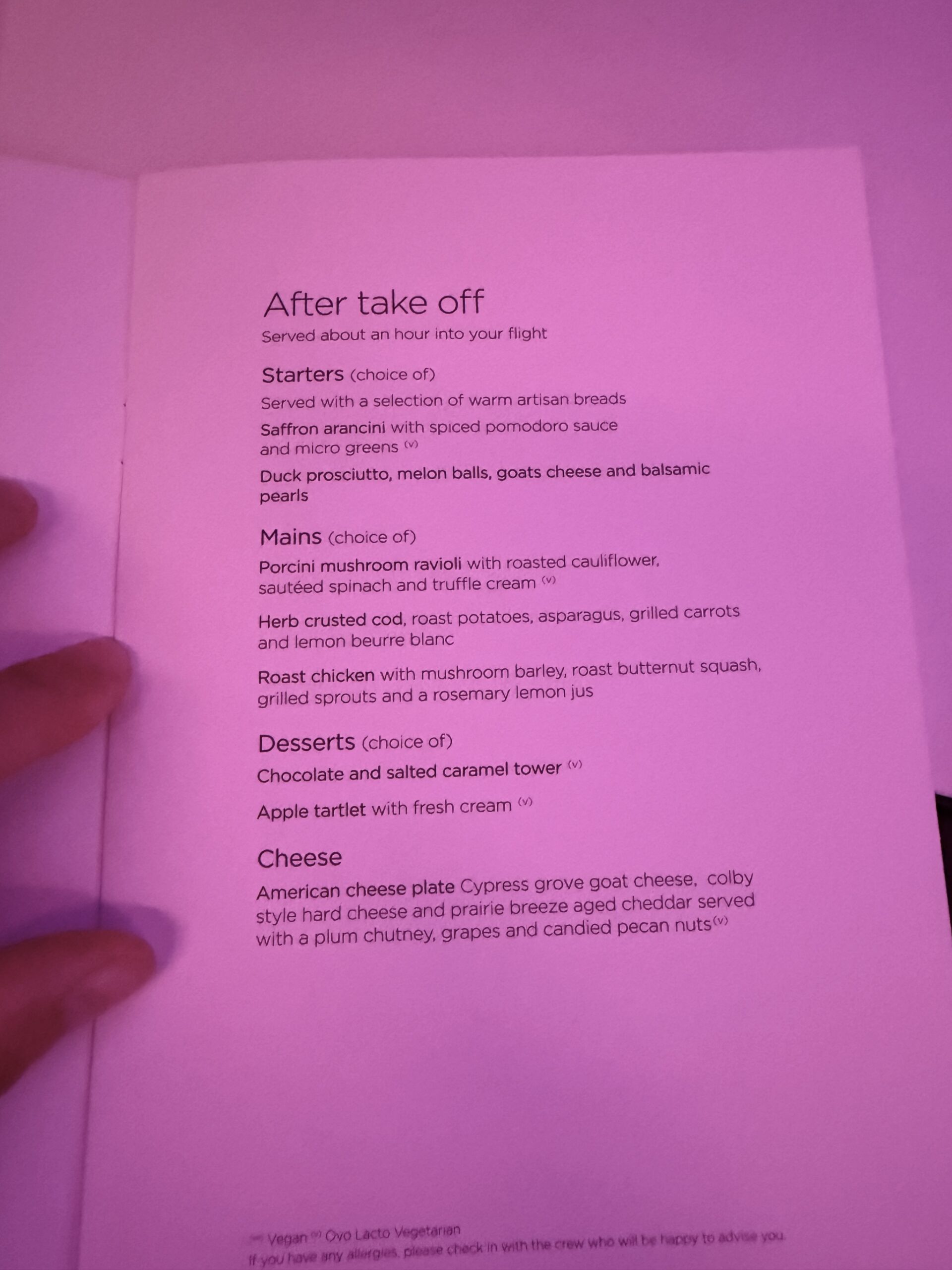 And it was all bathed in Virgin's classy purple-and-red cabin lighting ahead of our evening departure for London. Virgin really sets the mood right from the get-go.